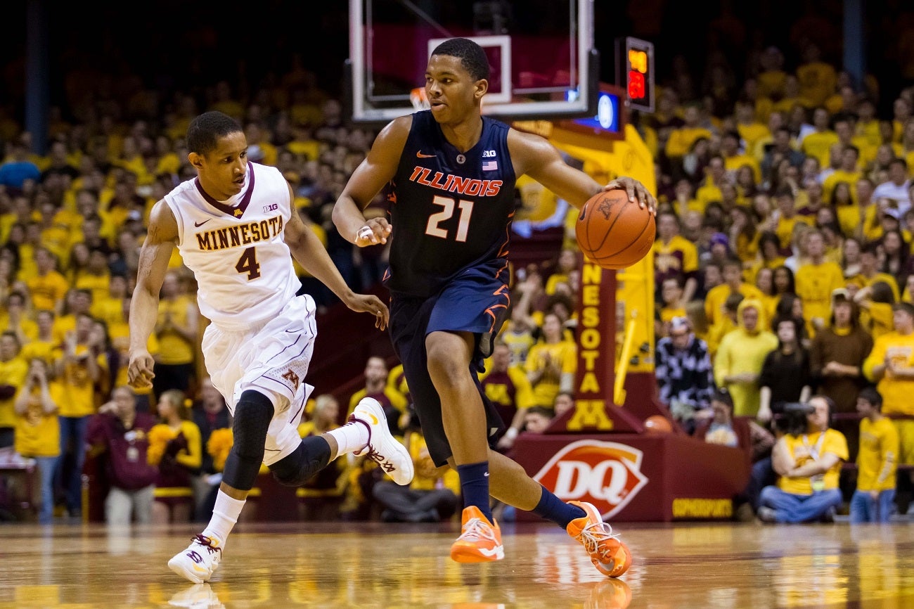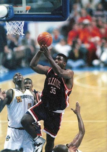 The hideous two-toned shorts with a slant Illinois ON THE LEG. Only positive here is we wore these in the 1995 win over Duke at Cameron. Nearly impossible to find pictures of these--almost as if they have been scrubbed from the internet. Good riddance.